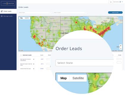 LeadCENTER’s lead mapping tool simplifies the process of locating leads nationwide. Use our heatmap of the United States based on counties to identify and purchase new leads. Navigate through the map and search bar to pinpoint a specific county, then select from three lead categories: Internet, Direct Mail, or Social Media. Buy leads effortlessly with a few simple clicks and proceed with reaching out to potential clients.